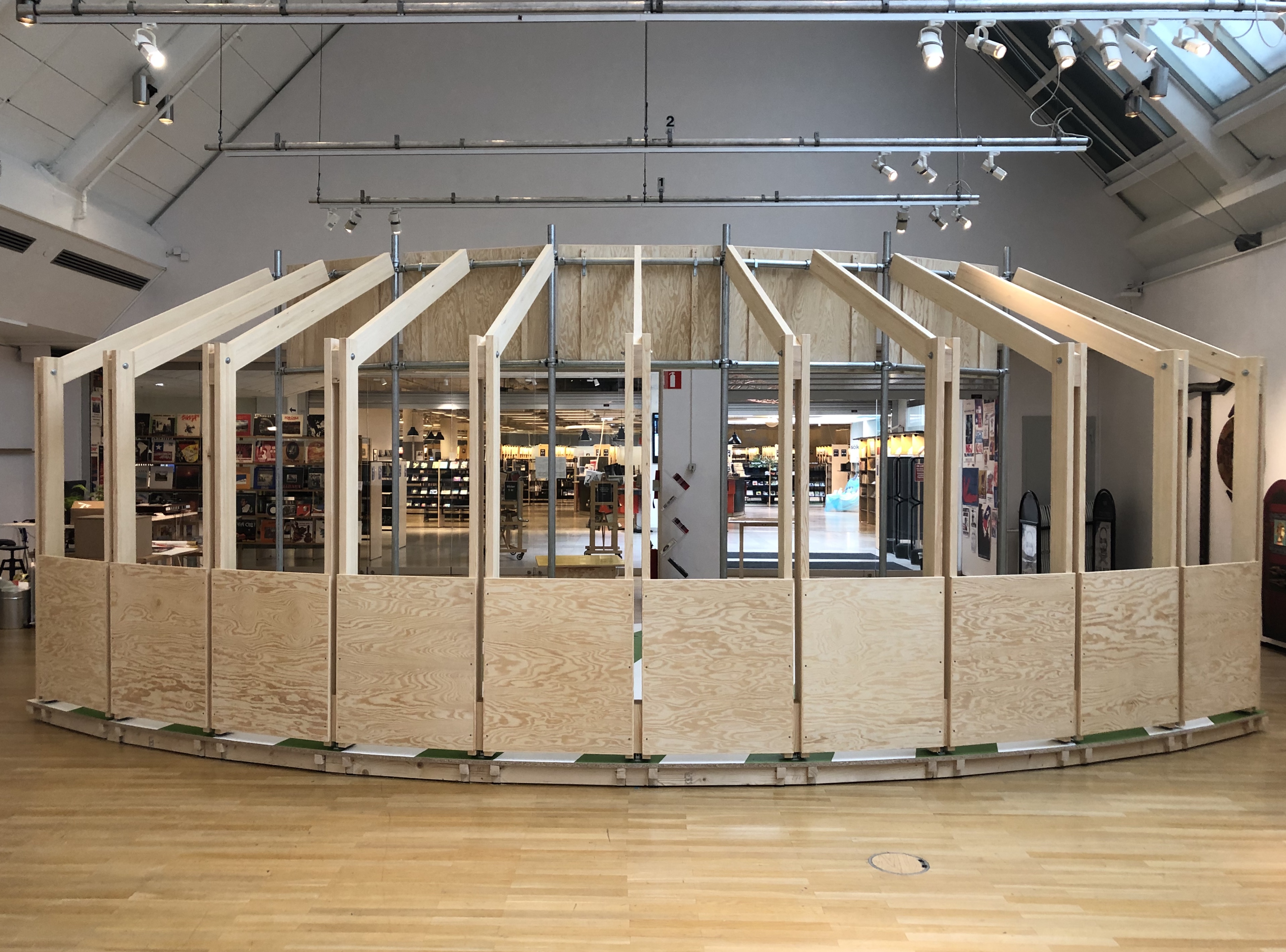 1984 gjorde Jenny Holzer verket "You live the surprise results of old plans". Detta är en precis beskrivning av arkitekturens dilemma. Vardagslivet behöver ofta anpassa sig till strukturer som planerades och konstruerades för helt andra framtider en den som är vår. Är det möjligt att tänka sig en annan arkitektur, en arkitektur som anpassar sig? Vi har fått i uppdrag att arbeta fram en ny entresituation för Södertälje konsthall. Besökare möter en konstruktion och en föränderlig infrastruktur, som är både reception, arkiv, mötesrum, natur, arbetsplats och rum för konst. Projektet sker ackulmulativt och efterhand. Istället för att söka en färdig gestalt är detta ett rumsligt experiment att förstå som ett pågående. Där konstruktion, möbler och användning bjuder in till förändring. Det är ett förslag som växer fram i dialog och som söker efter nya mer utåtriktade former för möten och samtal kring konst och kultur.